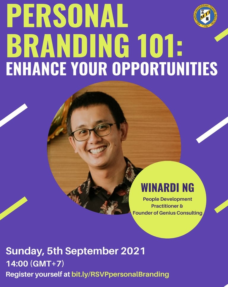 On 5th September 2021, Industrial Engineering Students of ITB collaborated with Genius Consulting to conduct a virtual session of personal branding 1o1. Our founder, Mr. Winardi shared a personal branding journey in the context of personal career development.